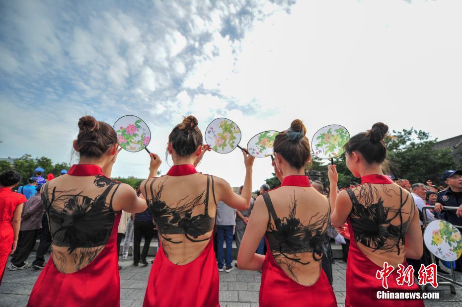 9月19日,“盛京1636——第二届沈阳国际旗袍文化节”在沈阳故宫和大帅府的连接地通天街广场开幕,1636位模特身着旗袍进行走秀表演。图为等待出场的模特。中新社记者 于海洋 摄