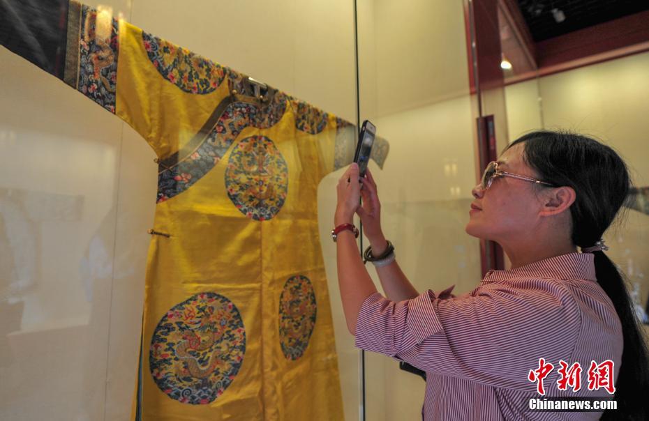 9月19日,“故都旗装——沈阳故宫珍藏清宫旗袍展”在沈阳故宫展出,10余款清宫后妃日常穿用的旗袍亮相。中新社记者 于海洋 摄
