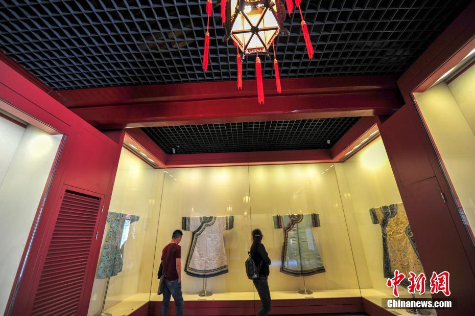 9月19日,“故都旗装——沈阳故宫珍藏清宫旗袍展”在沈阳故宫展出,10余款清宫后妃日常穿用的旗袍亮相。中新社记者 于海洋 摄