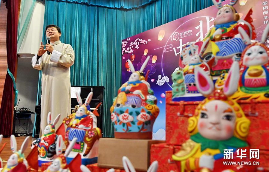 9月19日,非遗口技项目传承人方浩然在为学生们表演口技。 当日,北京市第十八中学嘉泰丰台学校组织开展“学非遗迎中秋”活动,来自北京老字号王致和等企业的民俗专家和学生们一起做月饼、绘兔爷、扎风筝、抖空竹,让学生们感受传统文化和非遗技艺的魅力。 新华社记者李欣摄