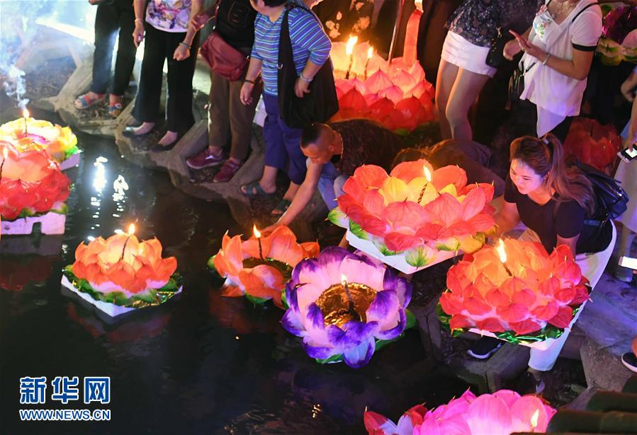9月21日,云南省文山壮族苗族自治州广南县八宝镇举行“中秋河灯节”。人们来到八宝河畔放河灯,迎接即将到来的中秋佳节。 新华社记者 杨宗友 摄