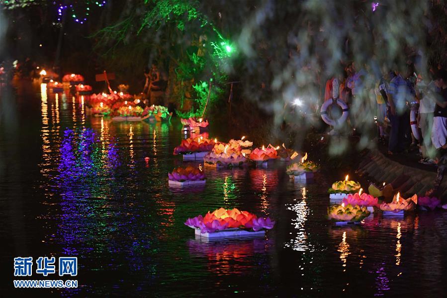 9月21日,云南省文山壮族苗族自治州广南县八宝镇举行“中秋河灯节”。人们来到八宝河畔放河灯,迎接即将到来的中秋佳节。 新华社记者 杨宗友 摄
