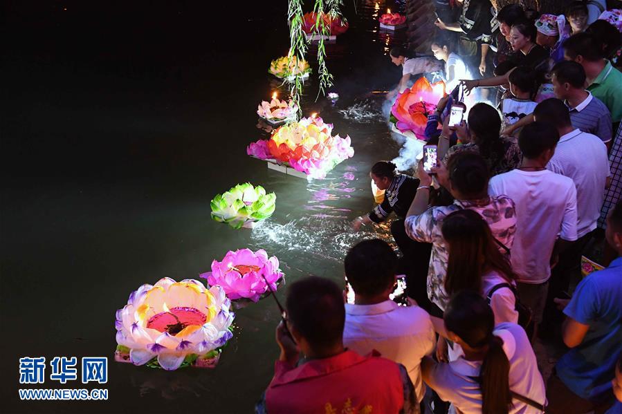 9月21日,云南省文山壮族苗族自治州广南县八宝镇举行“中秋河灯节”。人们来到八宝河畔放河灯,迎接即将到来的中秋佳节。 新华社记者 杨宗友 摄
