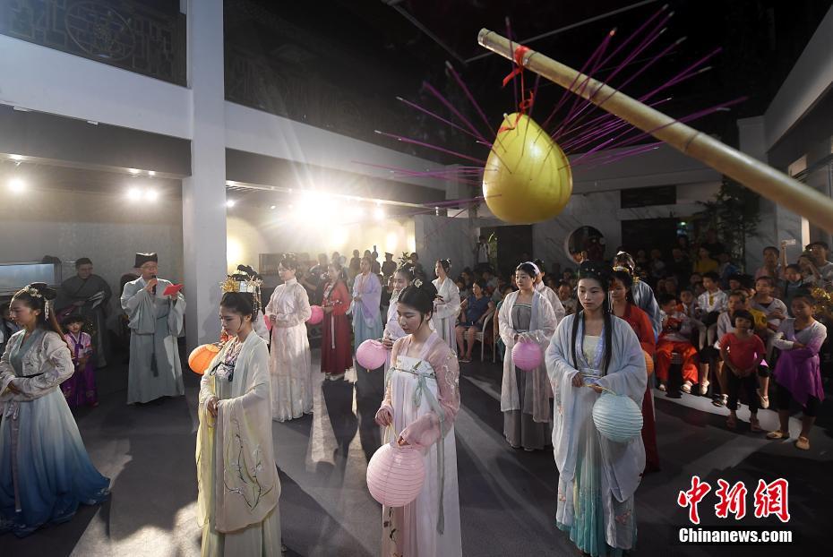 图为身穿古装的少女在中秋拜月仪式上。 张斌 摄