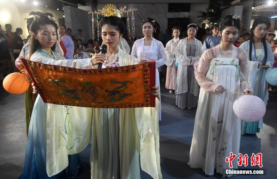 图为福州举行“拜月祭星祈福美好”中秋民俗活动,按流传千年的传统习俗举行祭月活动。 张斌 摄