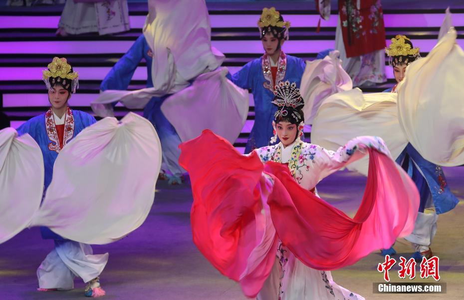 9月23日晚,2018江苏中秋戏曲晚会在南京江苏广电荔枝大剧院浓情上演,戏剧梅花奖得主王芳、周东亮、李政成、李鸿良、李亦洁等轮番登场,戏韵诗朗诵、武戏荟萃、地方稀有剧种联唱、戏曲小品,还有耳目一新的昆曲先锋跨界节目,呈现出传统戏曲艺术在新时代的时尚魅力与青春风采。江苏是“百戏之祖”昆曲的发源地 ,也是戏曲大师梅兰芳的故乡。肥沃的戏曲土壤,滋养着生生不息的梨园,让梨园开出娇艳的戏曲之花。 中新社记者 泱波 摄