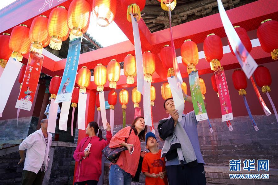 9月24日,市民和游客在北京民俗博物馆猜灯谜。