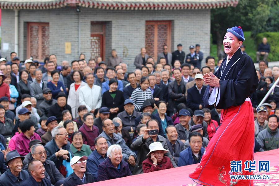 9月24日,在甘肃省平凉市柳湖书院,演员在表演秦腔。