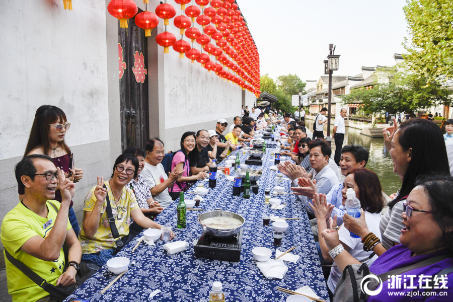 品味百米长街鱼宴 中外游客南浔共度中秋