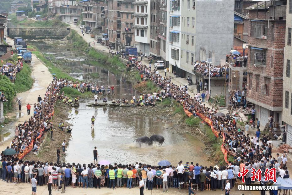 广西侗乡百年传统斗牛节吸引游客围观