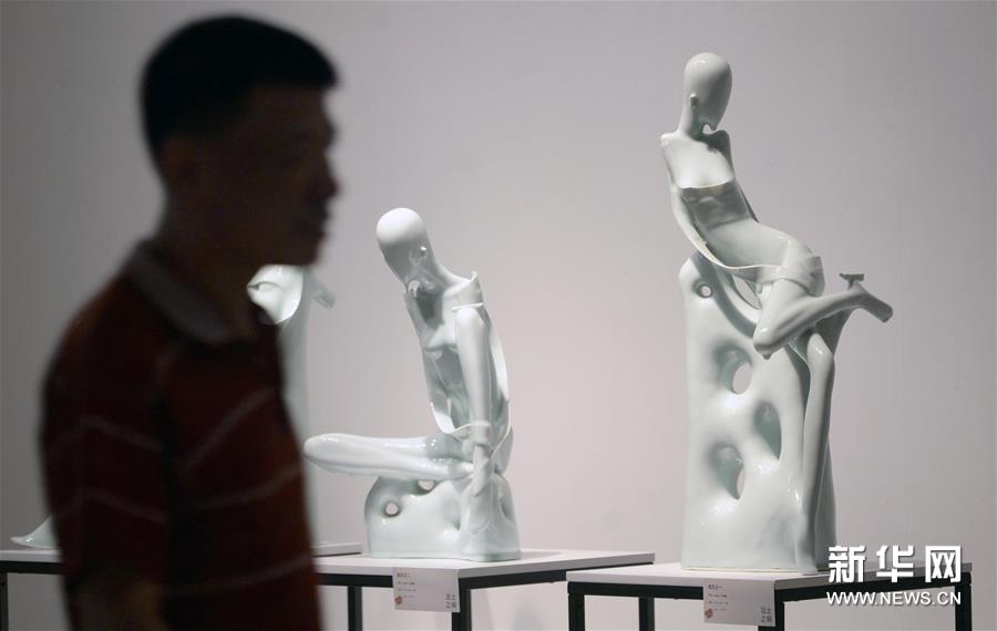 9月25日在双年展上拍摄的陶艺作品《观月》。 新华社发(施健学 摄)