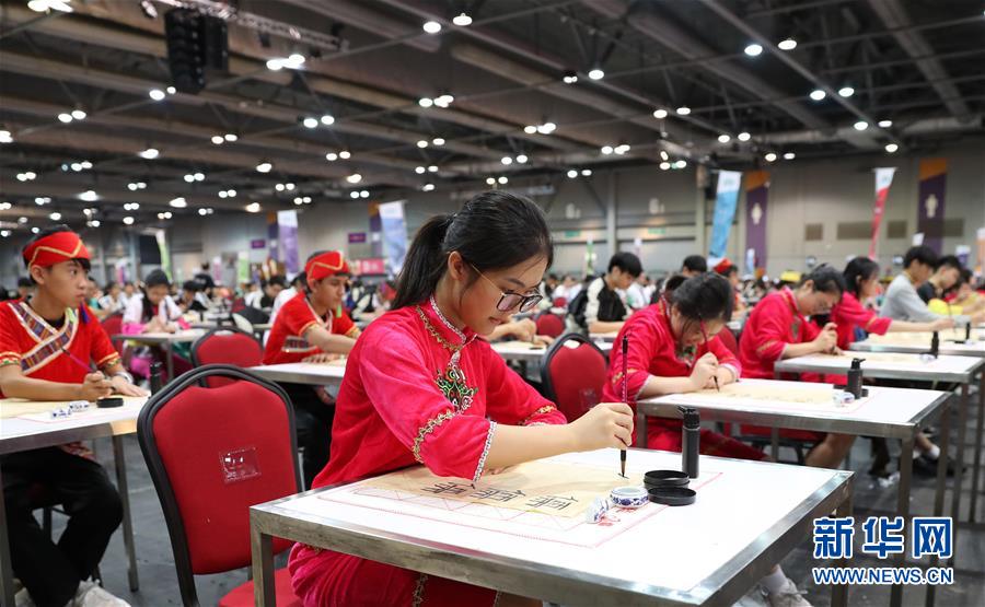 9月25日,首届“粤港澳大湾区青年节暨孔圣诞日”在香港亚洲国际博览馆举行,在其中一项活动“最大规模的书法课”上,2252位来自粤港澳大湾区的青年身穿各民族服饰,以隶书共写“儒”字,创下群体书法的世界纪录。 新华社记者 李钢摄