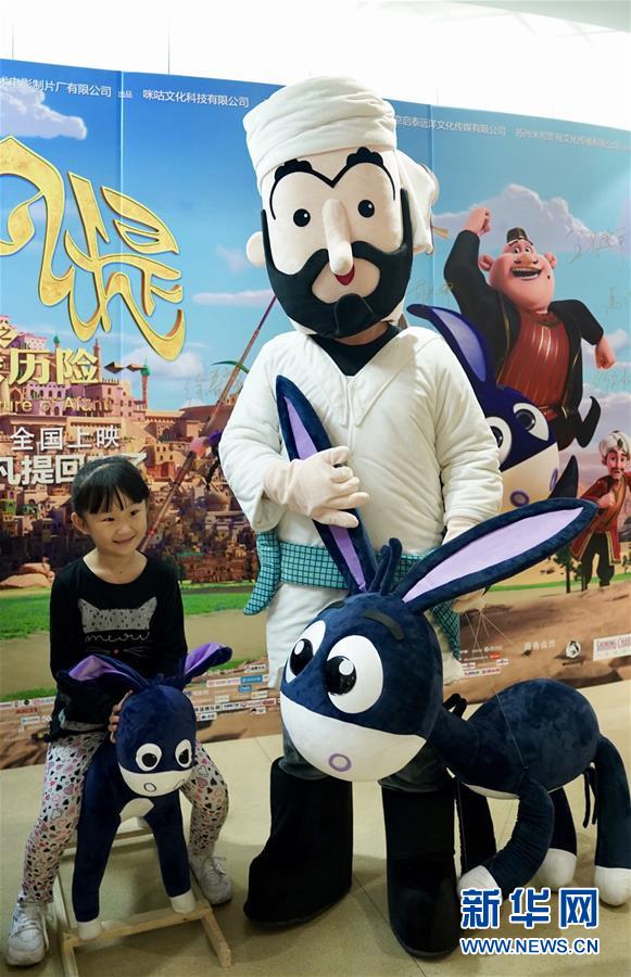 9月26日,“阿凡提”与小观众合影。 新华社记者 刘颖摄