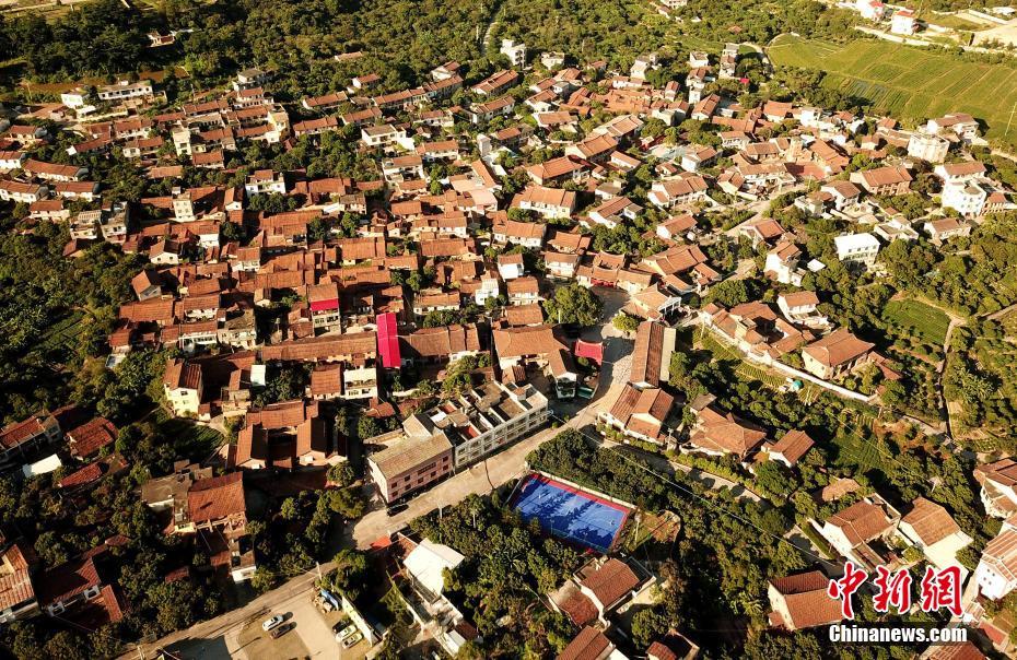 9月26日,记者探访福建著名侨村——莆田后黄村。后黄村素有“南洋风情,梦里老家”的美誉。图为空中俯瞰后黄村。中新社记者 王东明 摄