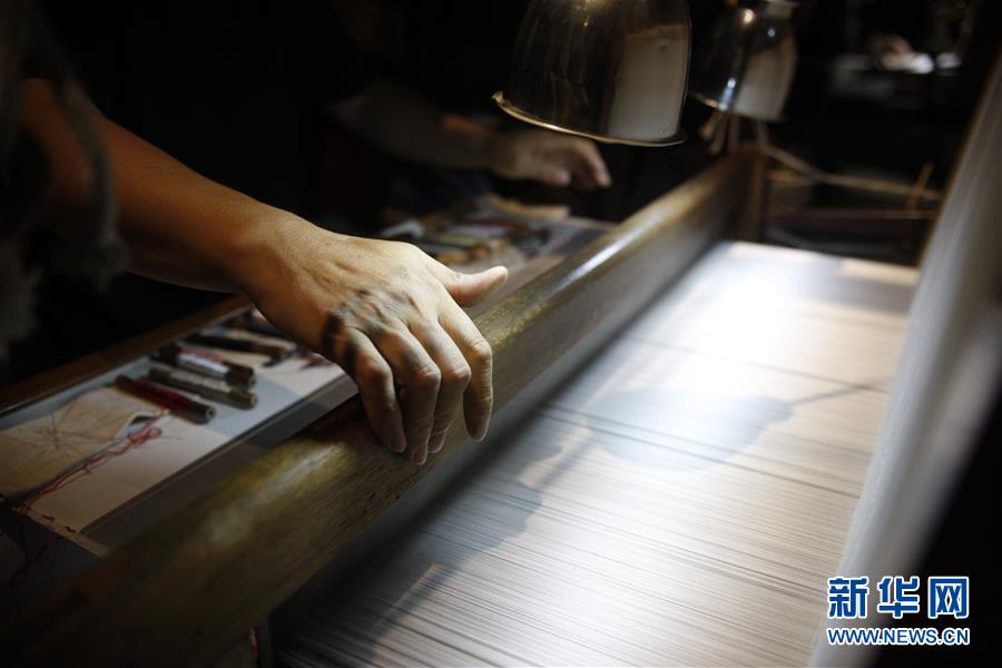 在江苏南京市云锦博物馆,一名织工在编织云锦(9月26日摄)。 新华社记者朱唯希摄