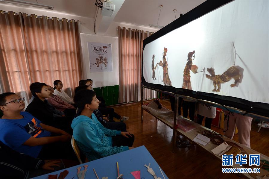 9月27日,在湖北保康县马良镇中心学校,学生在观看皮影戏演出。 新华社发(杨韬 摄)