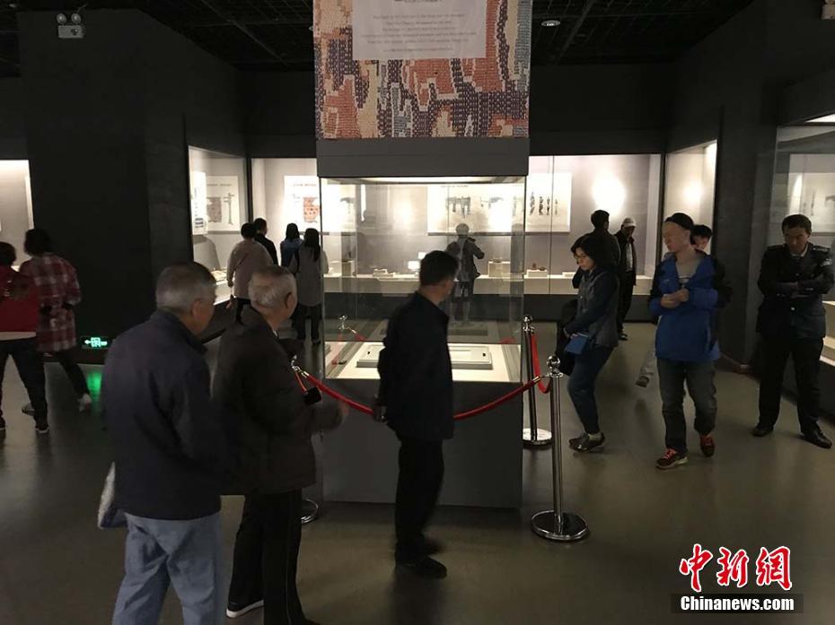 国宝级文物“五星出东方利中国”织锦护臂吸引众多参观者。王小军 摄