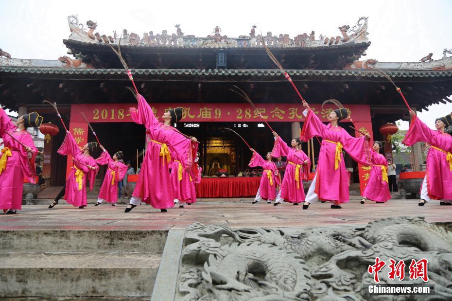 9月28日是中国伟大思想家、教育家、儒家学派创始人孔子诞辰2569周年纪念日,中国南方现存最古老、规模最大、最具特色的孔庙—广东德庆孔庙,当日按照传统习俗举行祭孔大典,吸引3000多名岭南孔氏宗亲和海内外游客前来参与。中新社发 龙许 摄