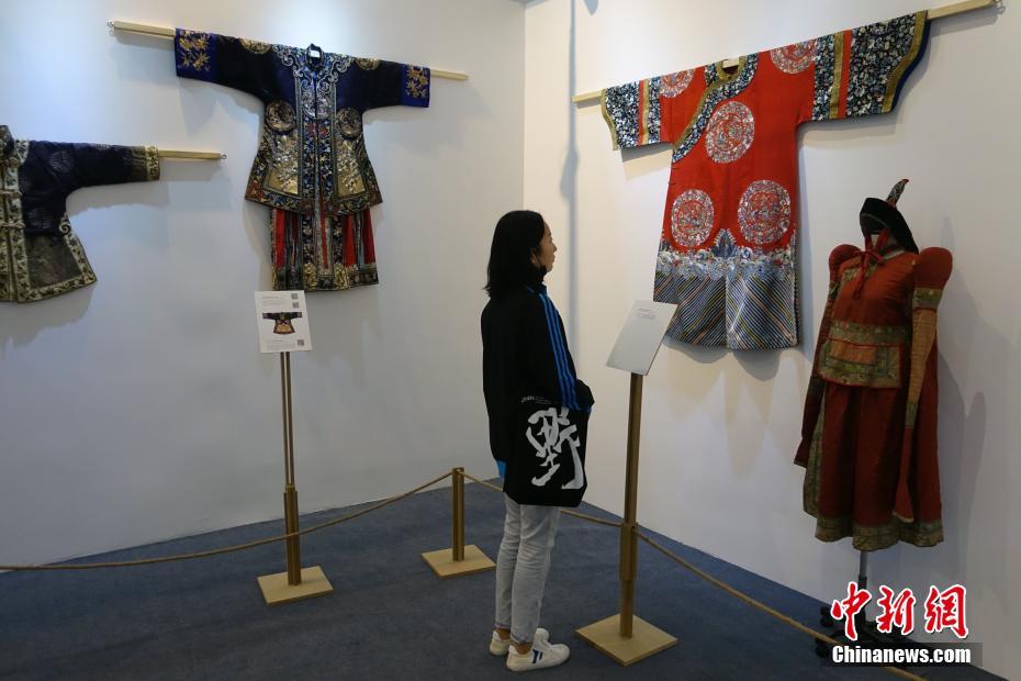 9月28日,“王金华汉满蒙古典服饰藏珍与研究成果展”在北京服装学院艺术楼举行。展览集中展出了国内知名民间收藏家王金华先生珍藏的清代满汉女装传世实物及首饰、头冠等百余件藏品。图为观众参观展览。中新社记者 任海霞 摄
