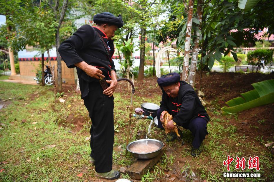 10月2日,参加祭祀的神职人员清洗火塘中烤出的鸡。当日,云南省沧源佤族自治县佤族传统节日新米节在“莫伟神”祭祀仪式中拉开序幕。“莫伟神”是佤族民众信仰中主宰万物的最高神灵,它能保佑村寨五谷丰登、六畜兴旺。中新社记者 刘冉阳 摄