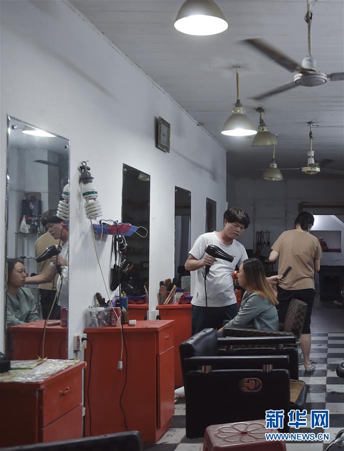 10月2日,在石狮市永宁古卫城,居民在一家理发店美发。 新华社记者 宋为伟摄