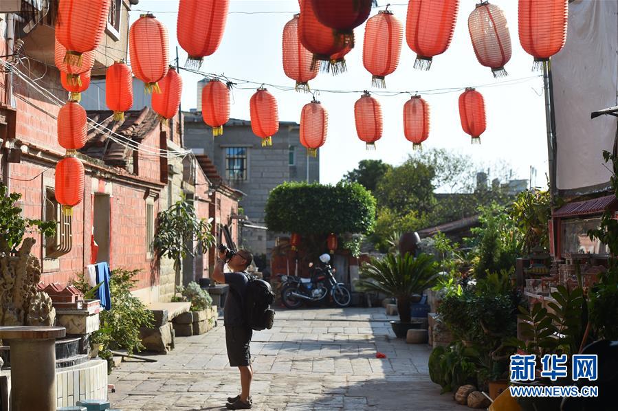 10月2日,游客在石狮市永宁古卫城游览拍摄。 新华社记者 宋为伟摄