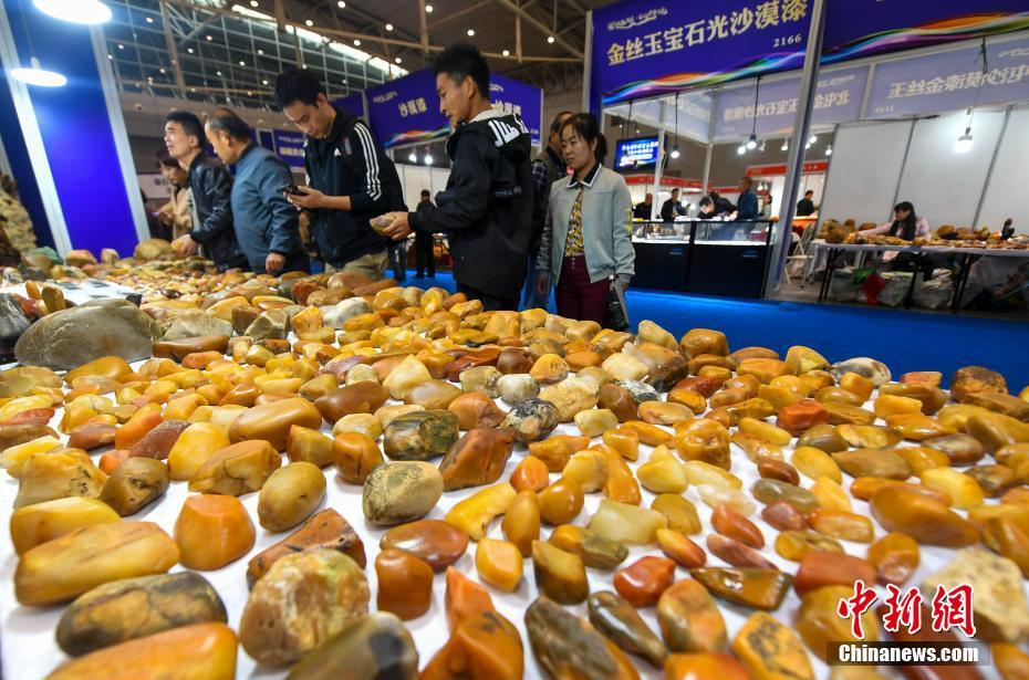 10月3日,2018乌鲁木齐丝绸之路玉石文化产业博览会在新疆国际会展中心举办,展品涵盖和田玉、金丝玉、奇石、宝石、珠宝首饰、黄龙玉、翡翠、南红等500余种。中新社记者 刘新 摄