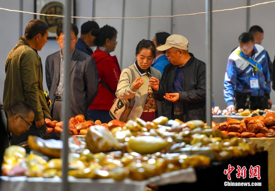 图为展会吸引众多奇石玩家到场以石会友。中新社记者 刘新 摄