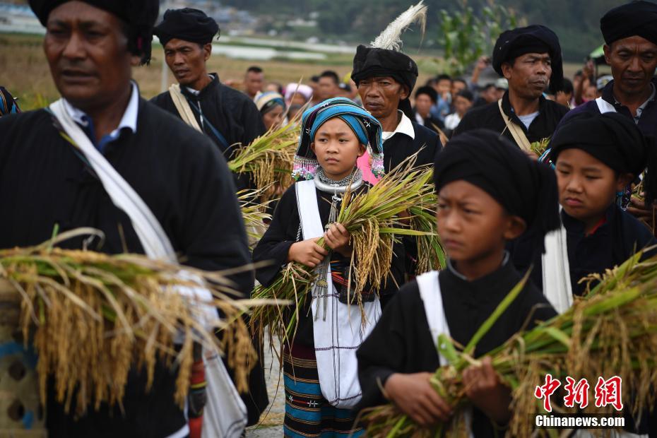 取新谷迎谷魂的队伍。中新社记者 刘冉阳 摄