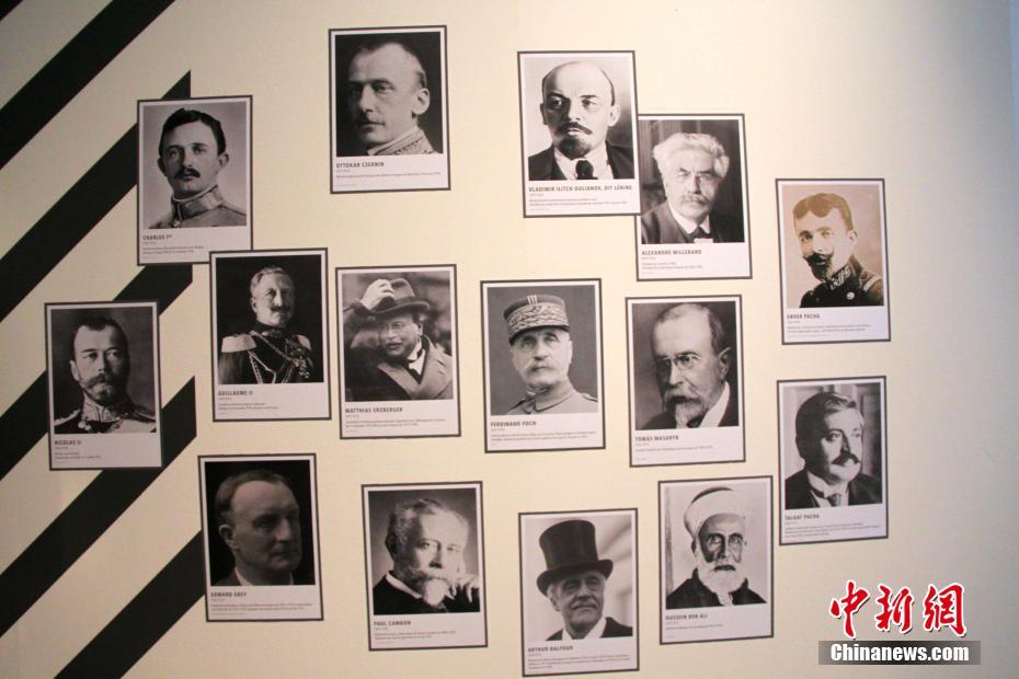 当地时间10月5日,第一次世界大战结束百年主题纪念展在法国军事博物馆开展。图为在展览中集中展示的一战相关国家的政要照片。中新社记者 李洋 摄