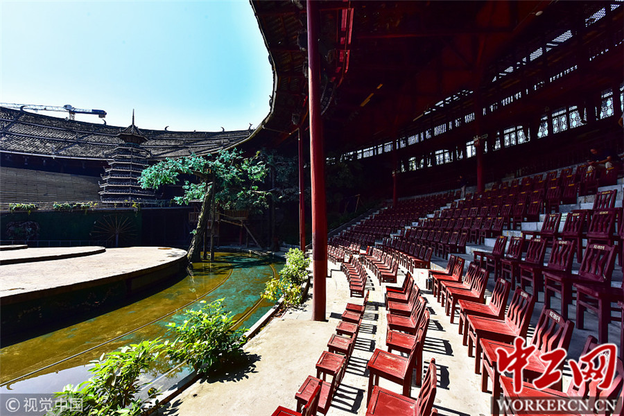 中工网讯 2018年10月6日,广西柳州,三江侗族自治县的“侗乡鸟巢”场馆呈圆形,直径88米,高29米,占地面积5000多平方米,建筑使用木材量近2000立方米,三楼建有66个侗族民风民俗展厅,悬挂有一幅全长250多米、高2.7米的侗族农民画。