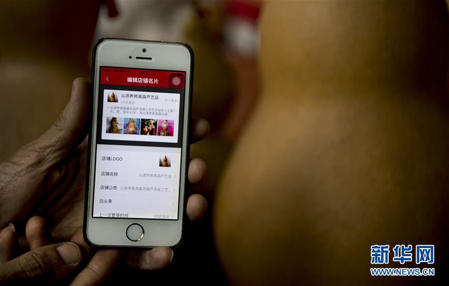10月8日,王英杰在介绍他的网店。 新华社记者陶明摄