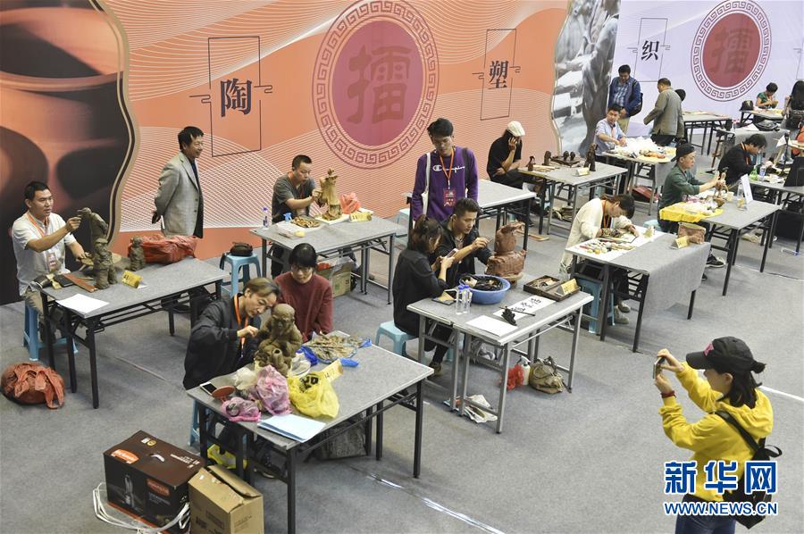 10月11日,选手在参加民间艺术绝技绝活擂台赛。