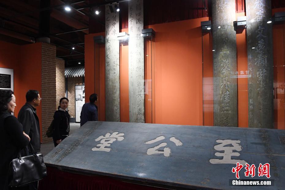 10月11日,甘肃清代贡院修缮完成开门迎客,清代牌匾吸引民众。近日,拥有一百多年历史的甘肃贡院古建筑至公堂、观成堂修缮完成,这是甘肃贡院中心建筑至公堂历史上最大规模的一次修缮。创建于1875年的甘肃贡院是清末中国17家贡院之一,至公堂和观成堂这两座朱漆、彩绘、全木结构的古建筑代表了中国科举时期的整体建筑风格,现保存于兰州大学第二医院院内,这里曾是甘肃、青海、宁夏、新疆等地晚清学子的科举之地,最多时有3000多人在这里参加科举考试。中新社记者 杨艳敏 摄