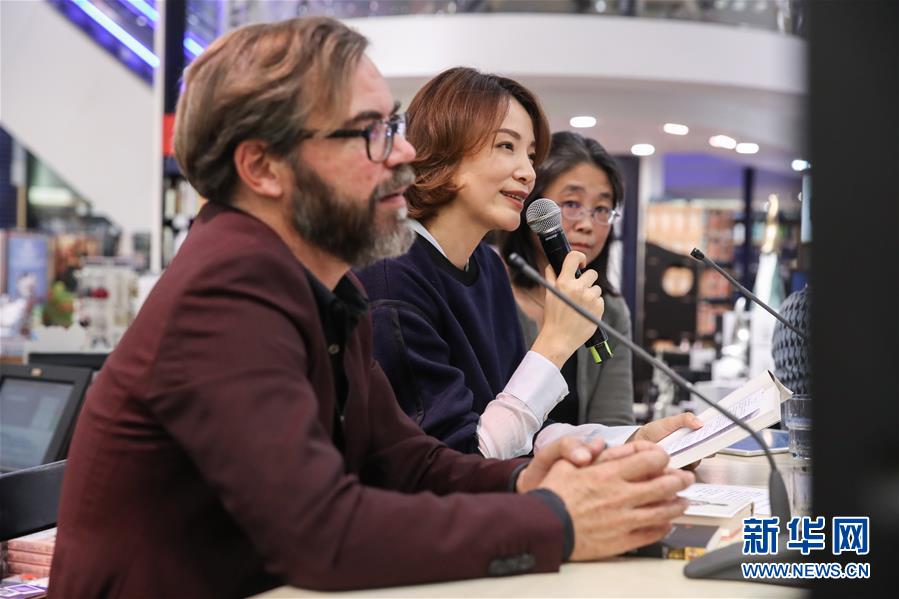 10月11日,在德国首都柏林,董卿(中)在读书会上朗读《朗读者》中节选的史铁生的作品。 11日晚,一场有关生命的中德文学对话在德国柏林市中心的塔利亚连锁书店上演。电视文化节目《朗读者》创始人董卿和德国作家大卫·瓦格纳交流着从各自人生以及文学中获得的生命感悟。 新华社记者单宇琦摄