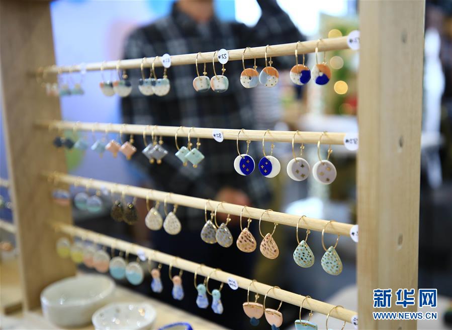 这是10月20日在澳大利亚堪培拉手工市场拍摄的由伊万·布洛克和安东由美设计的首饰。 新华社发(潘翔越摄)