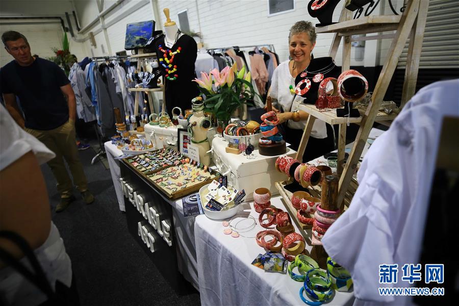 这是10月20日在澳大利亚堪培拉手工市场拍摄的店长苏茜·韦伯斯特制作的首饰。 新华社发(潘翔越摄)