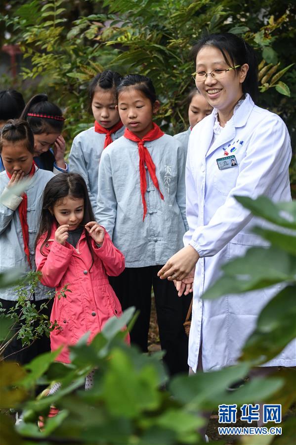 10月22日,长兴县中医院医生在学校的中草药种植园内给学生们讲解中草药的种类和功效。 当日是世界传统医药日,浙江省长兴县煤山镇白岘中心小学和长兴县中医院共同举办“传统中医药进校园”主题实践活动。通过学习中草药识别、采摘、炮制等,让学生们进一步体验了传统中医药的魅力。 白岘中心小学作为湖州市中医药文化教育基地,近年来致力于中医药文化的传播,在校内开辟了中草药种植园,种植了100多种中草药。学校在日常教授中医药基本知识的基础上,还将中医药传统文化和养生保健等内容进行结合,进一步发挥中医药在日常生活中的传承和推广。 新华社记者 徐昱 摄