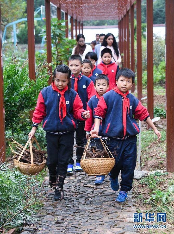 10月22日,长兴县煤山镇白岘中心小学学生提着收获的中草药走在校园里。 当日是世界传统医药日,浙江省长兴县煤山镇白岘中心小学和长兴县中医院共同举办“传统中医药进校园”主题实践活动。通过学习中草药识别、采摘、炮制等,让学生们进一步体验了传统中医药的魅力。 白岘中心小学作为湖州市中医药文化教育基地,近年来致力于中医药文化的传播,在校内开辟了中草药种植园,种植了100多种中草药。学校在日常教授中医药基本知识的基础上,还将中医药传统文化和养生保健等内容进行结合,进一步发挥中医药在日常生活中的传承和推广。 新华社记者 徐昱 摄