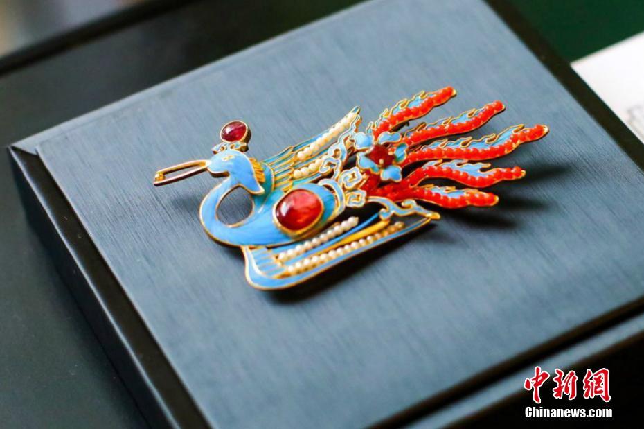 10月22日,在重庆蘭园“国艺主题艺术季”上,点翠艺术家马荆棘收藏和设计的30组点翠艺术品亮相,将点翠工艺那抹沁人心脾的蓝色映入观众眼帘。点翠工艺是一项中国传统的金银首饰制作工艺,是首饰制作中的一个辅助工种,起着点缀美化金银首饰的作用。图为点翠胸针。钟欣 摄