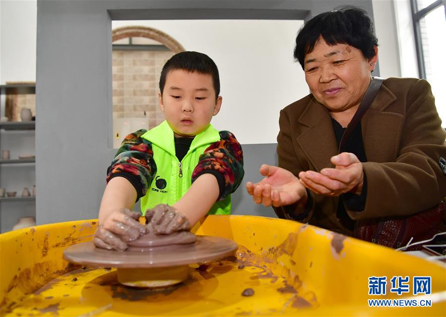 10月21日,在耀瓷小镇创意园区内,一名小朋友在家长的带领下体验陶瓷制作。 10月21日,纪念耀州窑创烧1400周年活动在陕西省铜川市耀瓷小镇开幕。系列活动中面向少儿的活动内容丰富多彩,吸引了众多小朋友和家长前来参观体验。 新华社记者邵瑞摄
