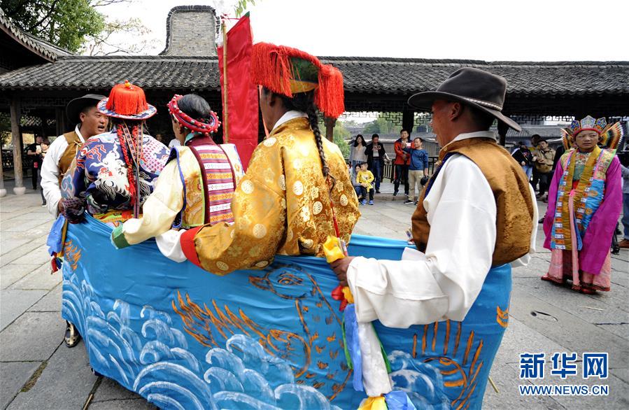 10月23日,西藏日喀则市昂仁县迥巴藏戏团在浙江乌镇演出。 当日,西藏日喀则市昂仁县迥巴藏戏团在浙江乌镇举行演出,吸引了众多游客驻足观赏。这个由农牧民组成的藏戏团继去年后再次在乌镇戏剧节亮相,将在这里进行为期六天的展演。 新华社记者 张汝锋 摄