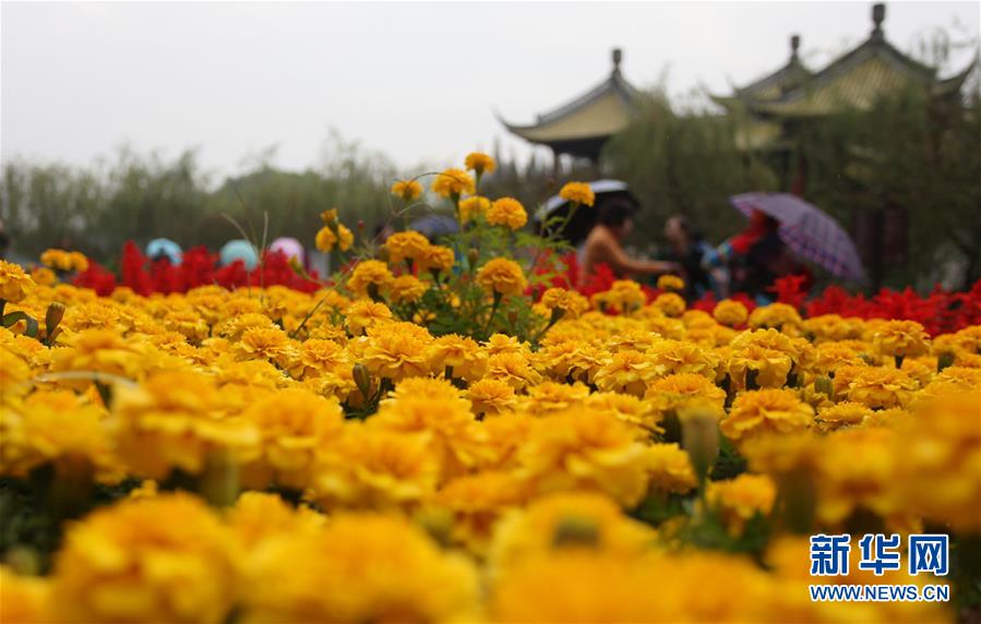 10月25日,游人在江苏扬州瘦西湖景区赏菊观光。