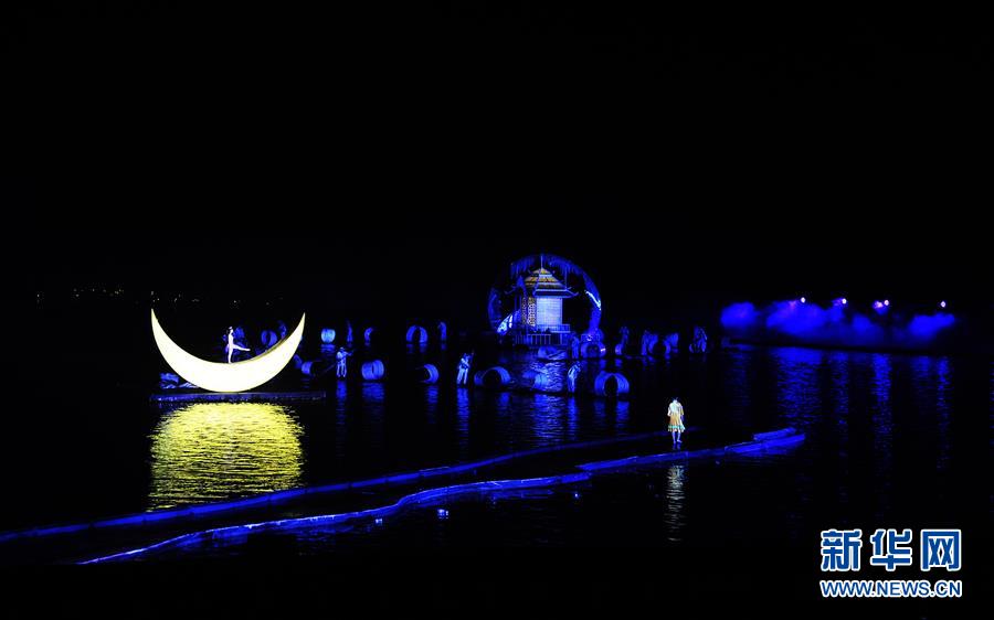 10月24日,演员在大型山水实景演出《印象刘三姐》中表演。《印象刘三姐》将民俗文化与桂林山水融为一体,大部分演员由阳朔当地渔民担当。 新华社记者 刘勇贞 摄