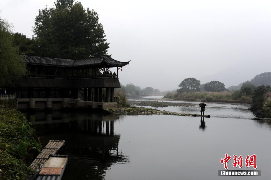 10月24日,浙江丽水古堰画乡,守堰人诸葛在巡视。古堰画乡特色小镇位于浙江省丽水市莲都区。小镇融山水风光和历史文化为一体,是国家级生态示范区,丽水巴比松油画的发祥地。1500多年历史的通济古堰被列入世界灌溉工程遗产和联合国教科文组织遗产名录。秀山丽水和人文风情吸引了不少画家和学生来此写生,游客更是纷至沓来。中新社记者 高庆国 摄