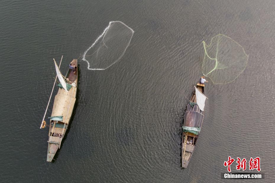 10月24日,浙江丽水古堰画乡的捕鱼人在瓯江上捕鱼。古堰画乡特色小镇位于浙江省丽水市莲都区。小镇融山水风光和历史文化为一体,是国家级生态示范区,丽水巴比松油画的发祥地。1500多年历史的通济古堰被列入世界灌溉工程遗产和联合国教科文组织遗产名录。秀山丽水和人文风情吸引了不少画家和学生来此写生,游客更是纷至沓来。如今,古堰画乡已建成国家4A级景区。中新社记者 杨华峰 摄