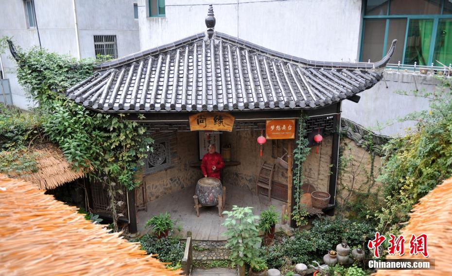 10月24日,浙江丽水古堰画乡,“丽水鼓词”传承人章永金在徒弟开的民宿内为客人表演。古堰画乡特色小镇位于浙江省丽水市莲都区。小镇融山水风光和历史文化为一体,是国家级生态示范区,丽水巴比松油画的发祥地。1500多年历史的通济古堰被列入世界灌溉工程遗产和联合国教科文组织遗产名录。秀山丽水和人文风情吸引了不少画家和学生来此写生,游客更是纷至沓来。如今,古堰画乡已建成国家4A级景区。中新社记者 韩冰 摄