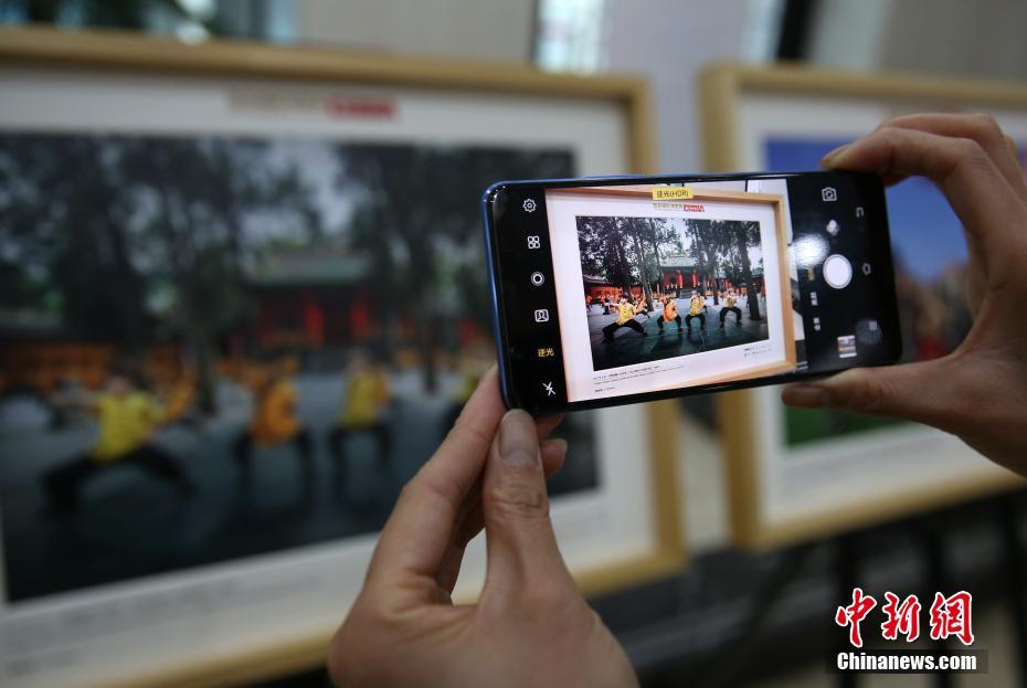 10月30日,由中国日报社、中国文联出版社主办,特想集团、加拿大加煌教育集团、首都图书馆、四川兴文县协办的《百名摄影师聚焦中国改革开放四十年》画册首发式暨图片巡展开幕式在北京举行。画册收录了210多位优秀摄影师40年来拍摄的325幅精彩作品,记录并展现40年来的经济社会发展成就。图为观众用手机拍摄作品。中新社记者 赵隽 摄