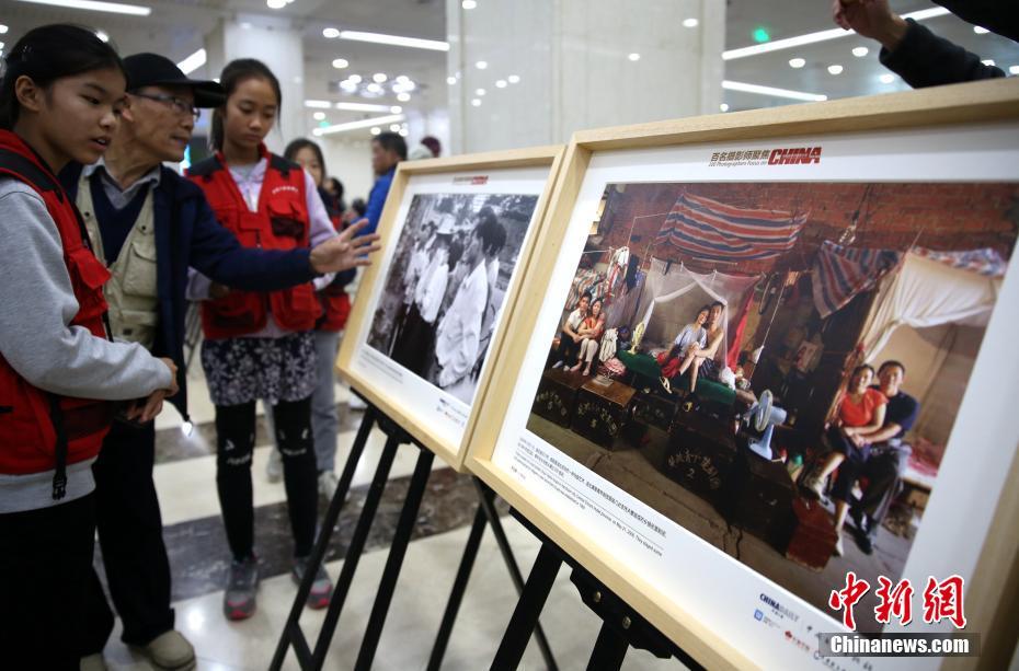 10月30日,由中国日报社、中国文联出版社主办,特想集团、加拿大加煌教育集团、首都图书馆、四川兴文县协办的《百名摄影师聚焦中国改革开放四十年》画册首发式暨图片巡展开幕式在北京举行。画册收录了210多位优秀摄影师40年来拍摄的325幅精彩作品,记录并展现40年来的经济社会发展成就。图为观众欣赏摄影作品。中新社记者 赵隽 摄