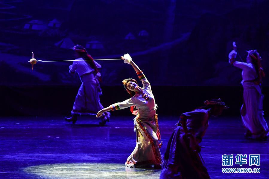 10月30日,玉树州民族歌舞团的演员在青海大剧院表演音乐剧《音画玉树》。 当日,由青海省玉树州民族歌舞团创作的非遗民俗音乐剧《音画玉树》在青海大剧院上演。 新华社记者 吴刚 摄